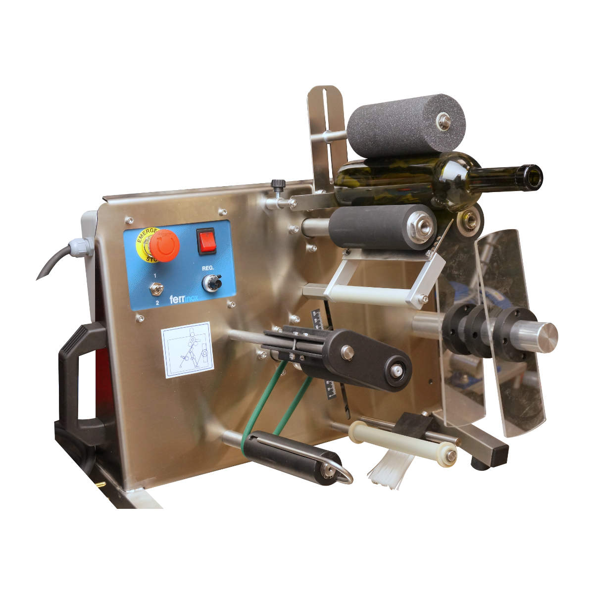 Etykieciarka półautomatyczna BASIC to praktyczne i sprawdzone rozwiązanie dla winiarni, cydrowni i producentów napojów, którzy prowadzą produkcję na małą i średnią skalę. Urządzenie przeznaczone jest do etykietowania butelek cylindrycznych oraz innych szklanych pojemników o podobnym kształcie.